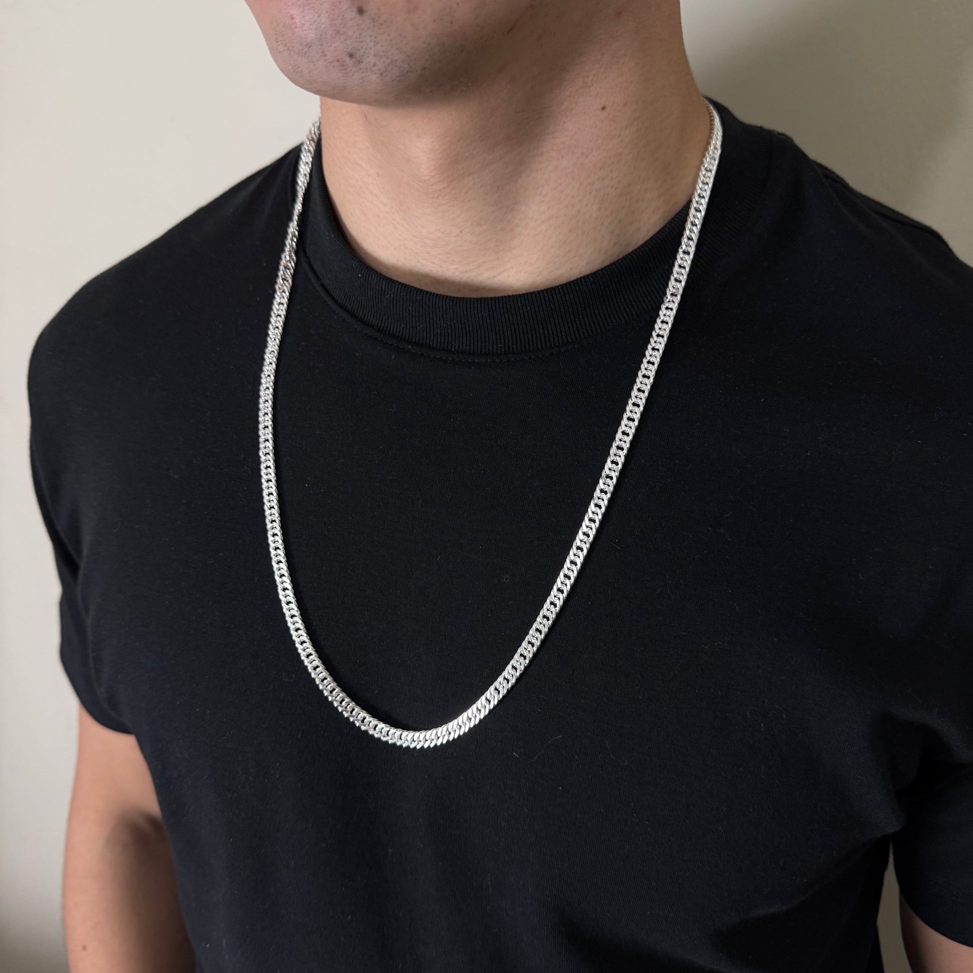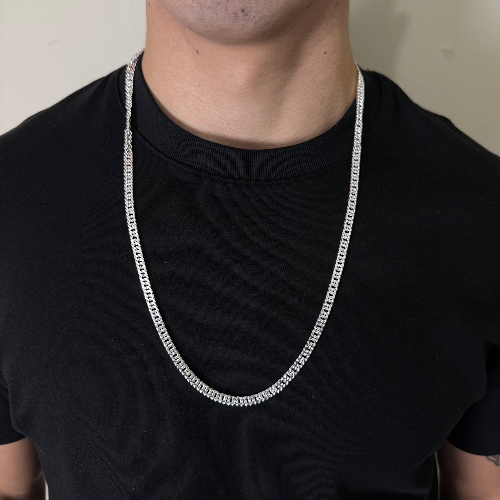 La Cadena Triple Grumet Plata 925 es el accesorio ideal para quienes buscan elegancia con carácter. Con 6 mm de grosor y un largo de 62cm, 67cm o 72cm, su diseño entrelazado ofrece una versión más robusta del clásico Grumet, aportando confianza total y una presencia imponente. Su acabado pulido refleja la luz en cada movimiento, haciéndote ver fachero y sofisticado. Garantiza durabilidad premium y resistencia al uso diario.