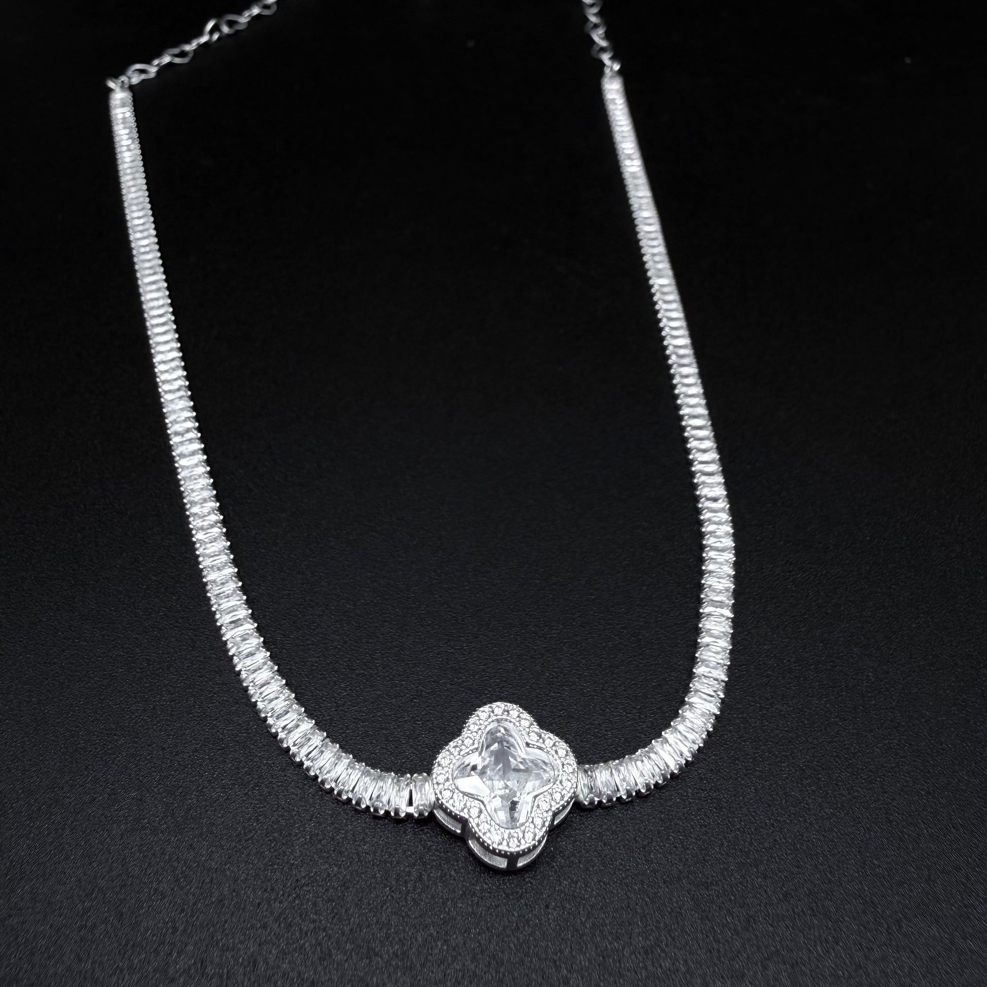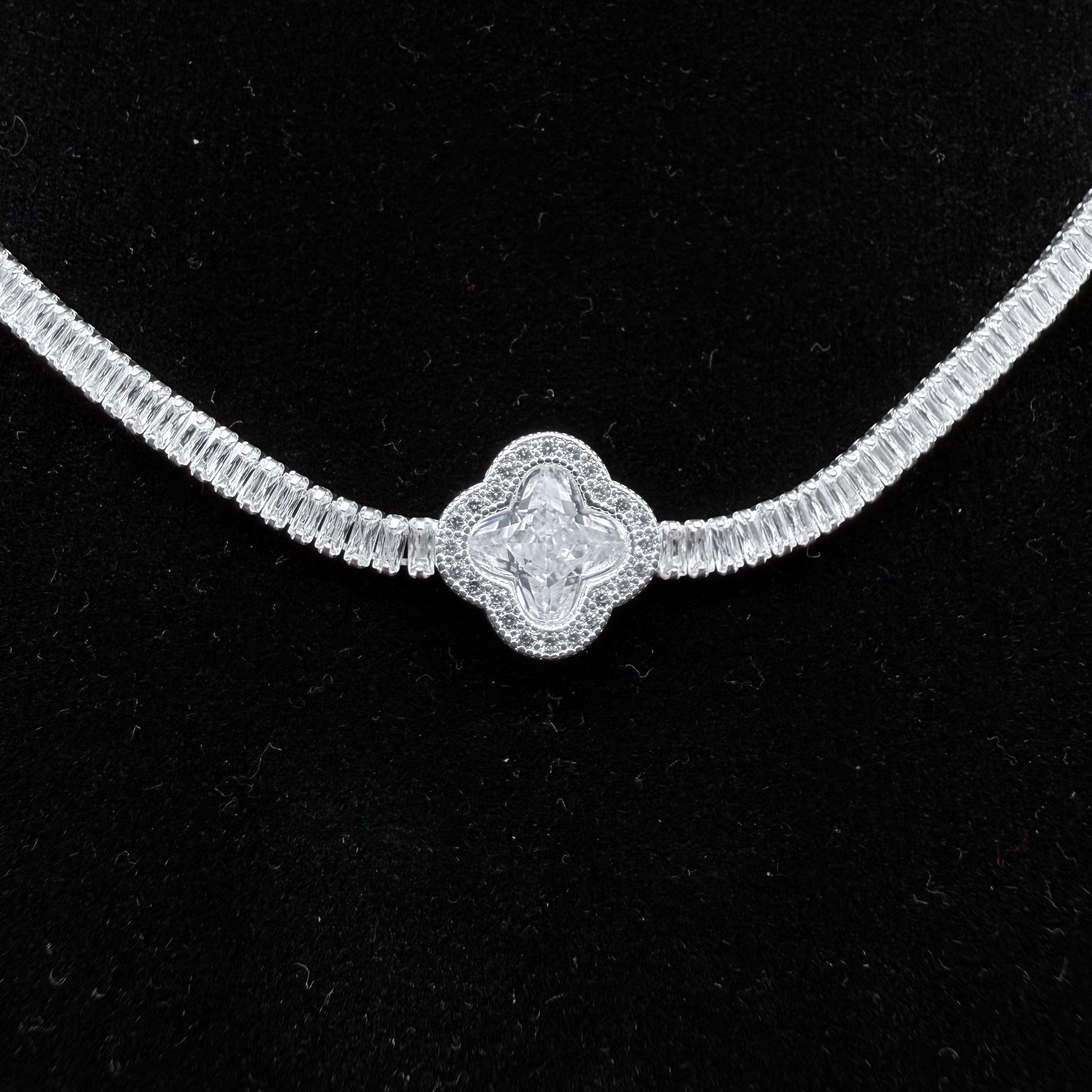 El Collar Van Cleef en Plata 925 es una pieza que fusiona elegancia y brillo con un diseño atemporal. Con largo de 37cm a 47cm, su detalle en forma de trébol está finamente cubierto de micro circones, reflejando luz sutil y llamativo.