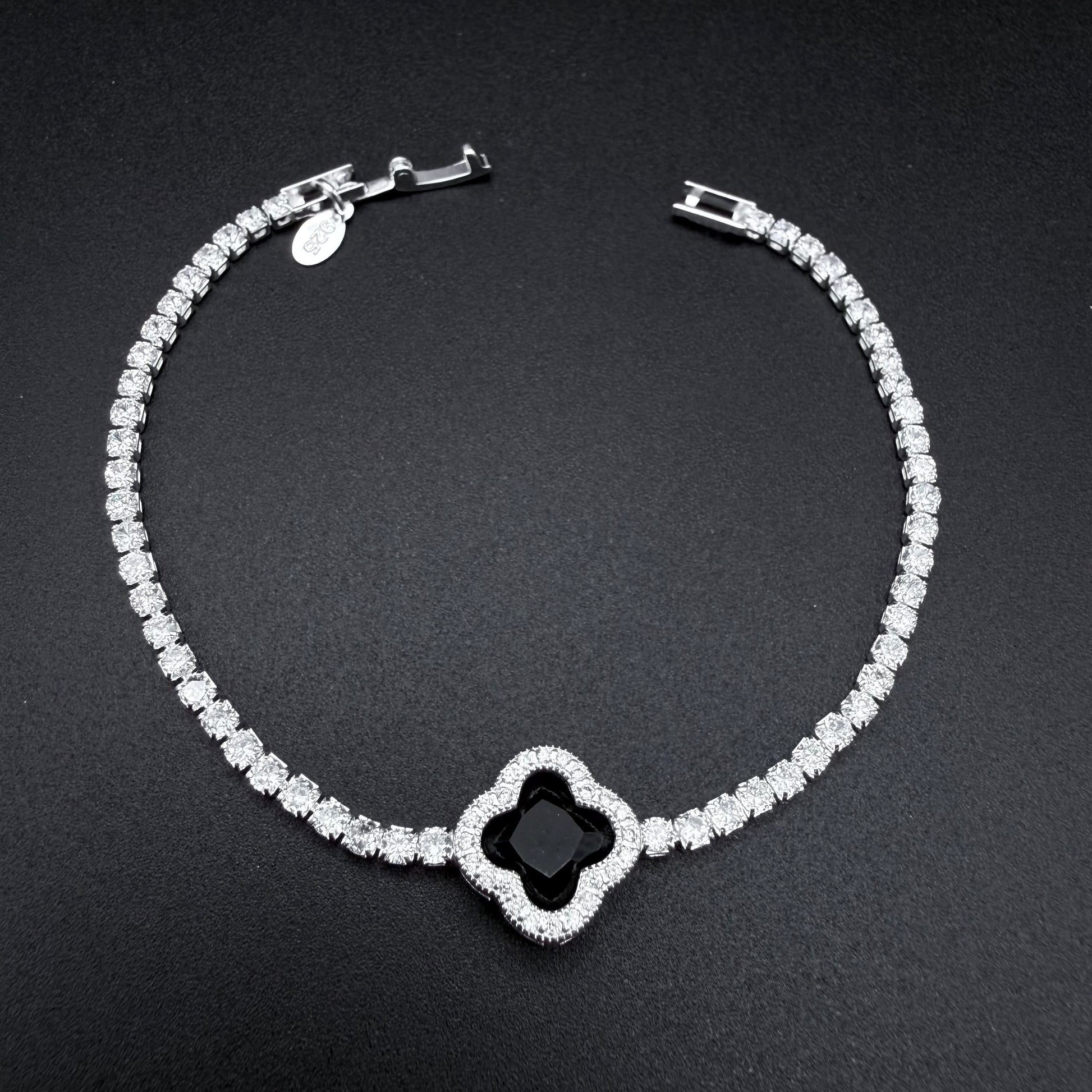 Diseño exclusivo que combina dos clásicos: la elegancia del modelo Tennis con el icónico emblema Van Cleef en el centro.